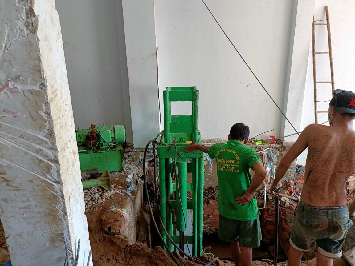 xử lý nhà ép tim cọc bê tông gia cường móng chống lún chống nghiêng chỉnh nghiêng nâng nhà lên cao xử lý nhà nghiêng xử lý nhà lún thần đèn số 1 thần đèn Việt Nam Ép cọc bê tông gia cường móng xử lý nền móng