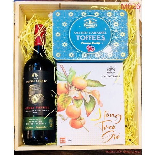 M026 - Hộp quà gỗ cao cấp Tết 2022, rượu Vang Jacobs Creek cao cấp
