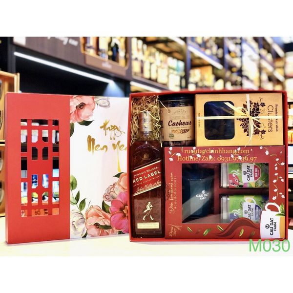M030 - Hộp quà tết cao cấp 2022, rượu Red Label cao cấp